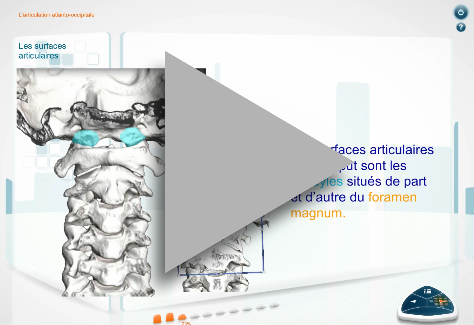 • Mes formations / (Scorm) Anatomie et Biomécanique Musculo-squelettique / Anatomie du rachis / Rachis cervical / Biomécanique du rachis cervical (11)