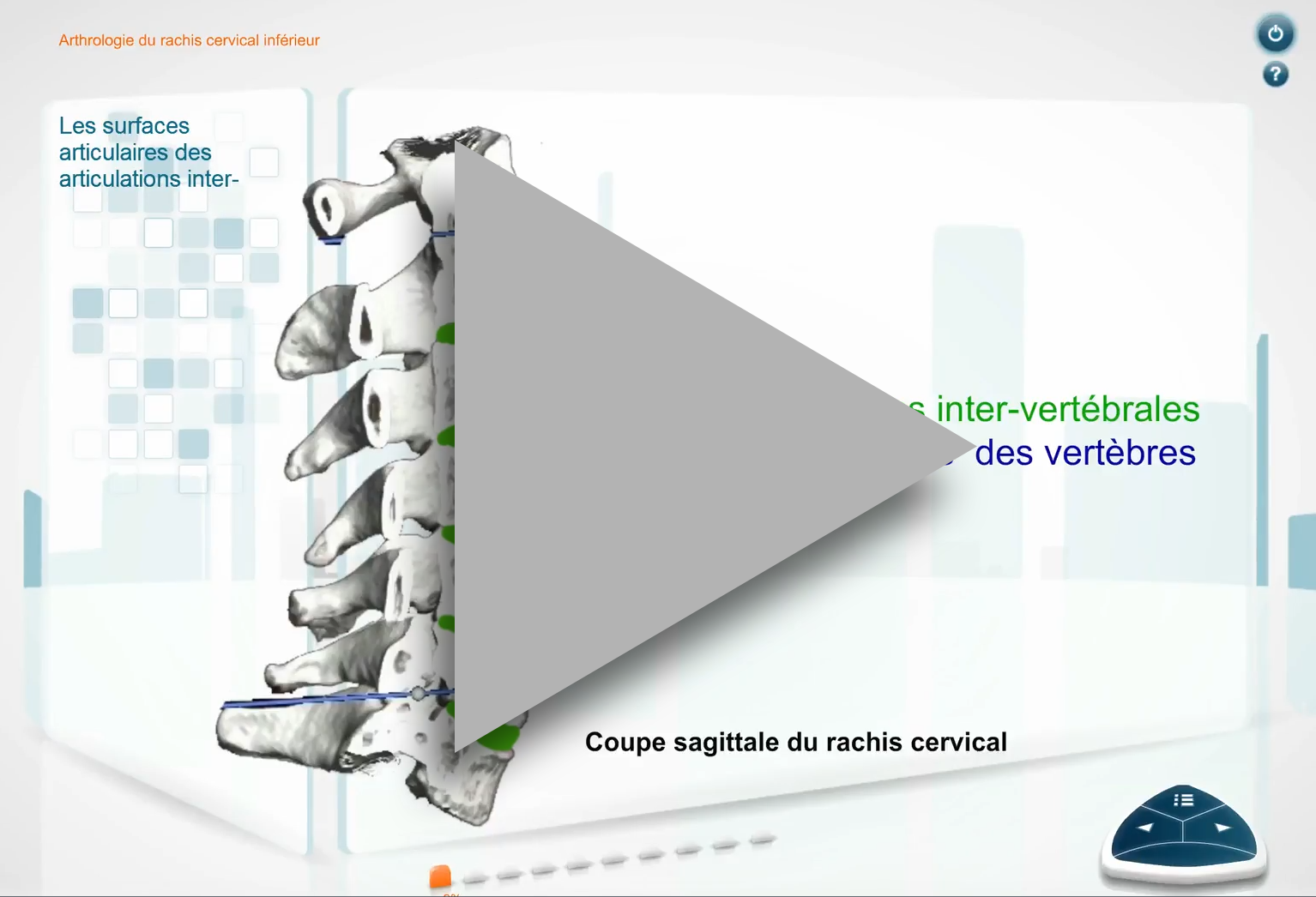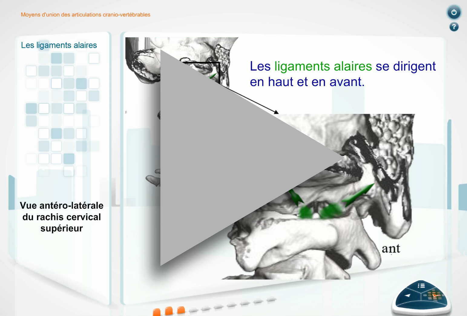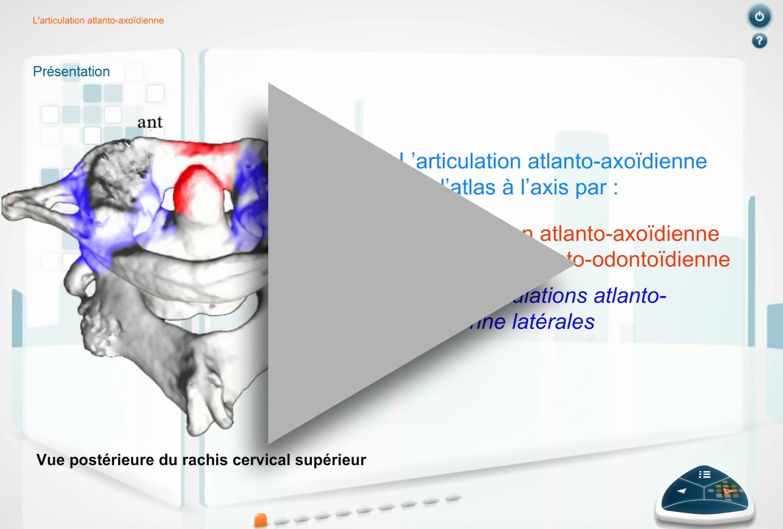 • Mes formations / (Scorm) Anatomie et Biomécanique Musculo-squelettique / Anatomie du rachis / Rachis cervical / Arthrologie du rachis cervical (6)
