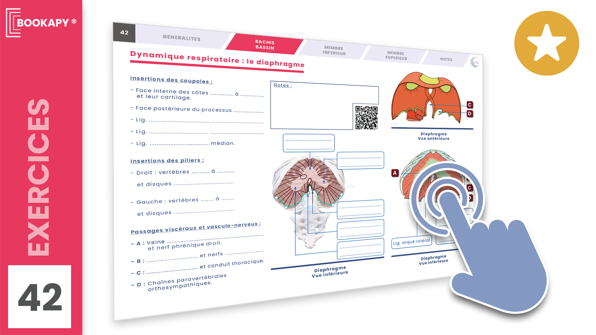 Exercices : Dynamique respiratoire : Le diaphragme (BOOKAPY® p42)