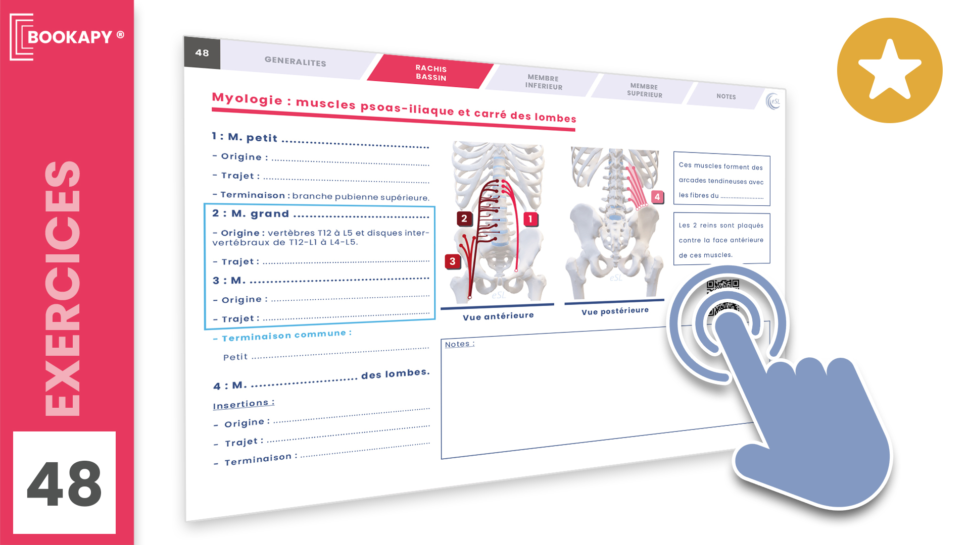 Exercices : Myologie : psoas-iliaque et carré des lombes (BOOKAPY® p48)