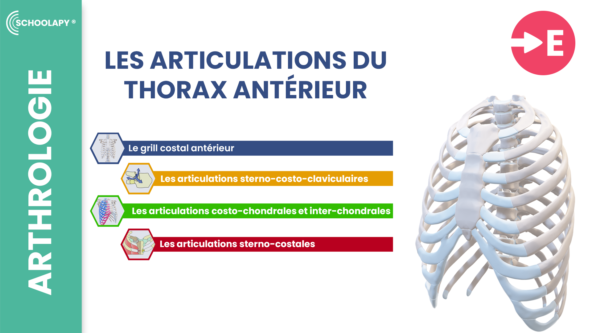 Le grill costal antérieur, les articulations sterno-costo-claviculaires, les articulations costo-chondrales et inter-chondrales, les articulations sterno-costales