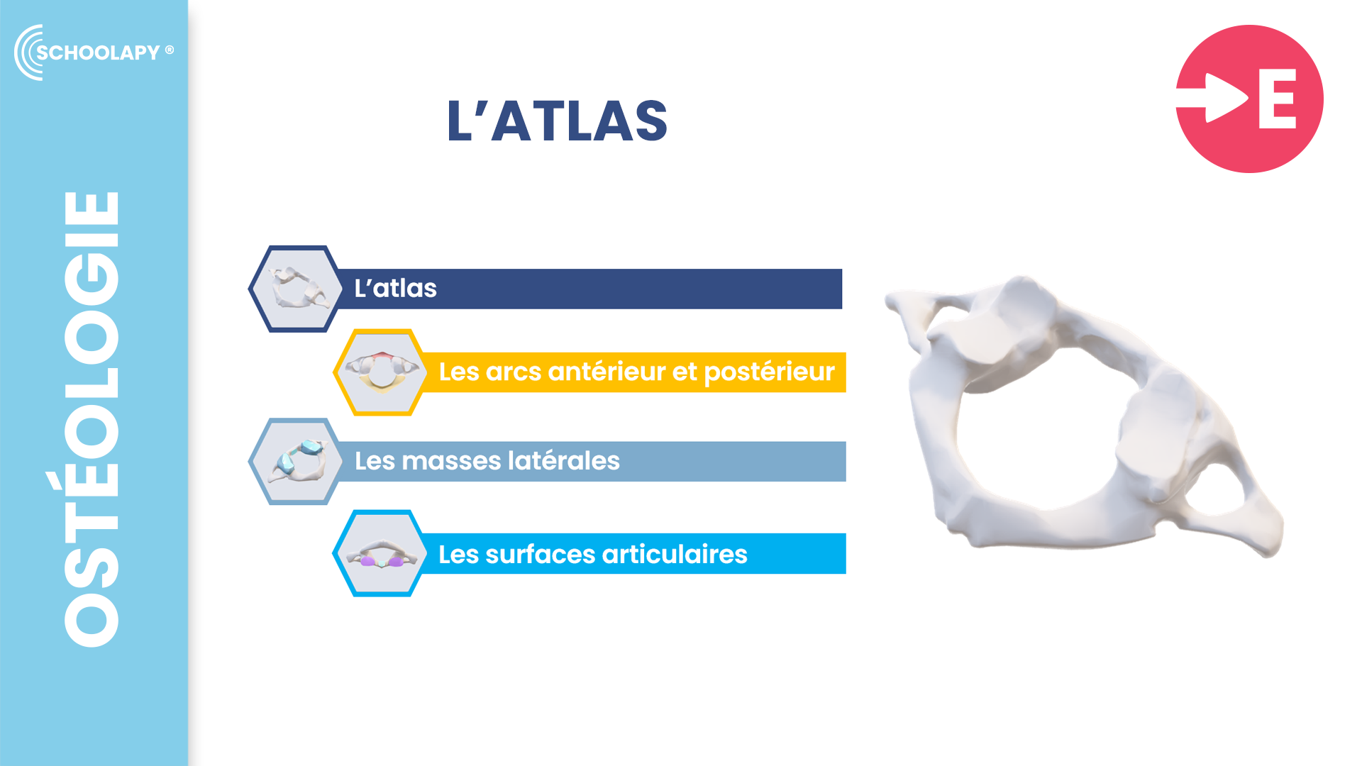 Les Essentiels : L'atlas, les arcs antérieur et postérieur, les masses latérales, les surfaces articulaires