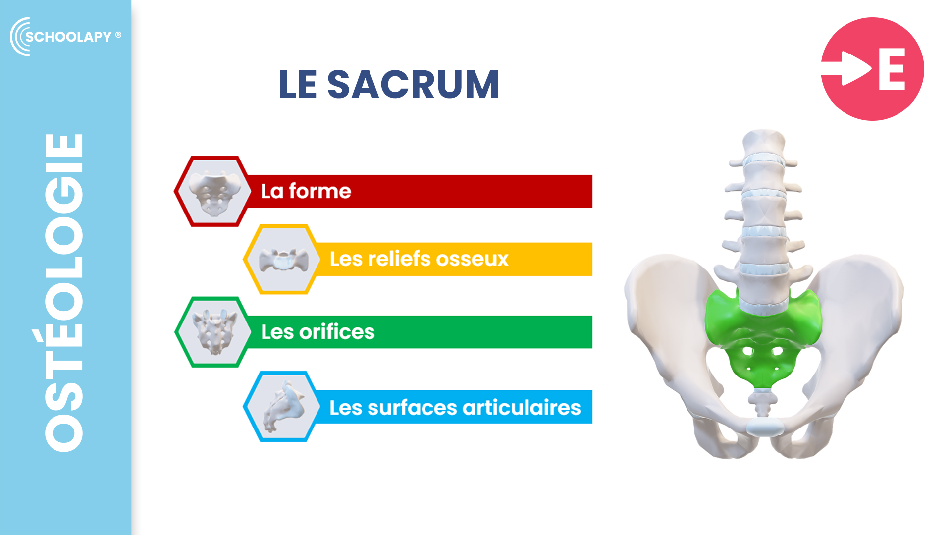 Les Essentiels : La forme, les reliefs osseux, les orifices, les surfaces articulaires