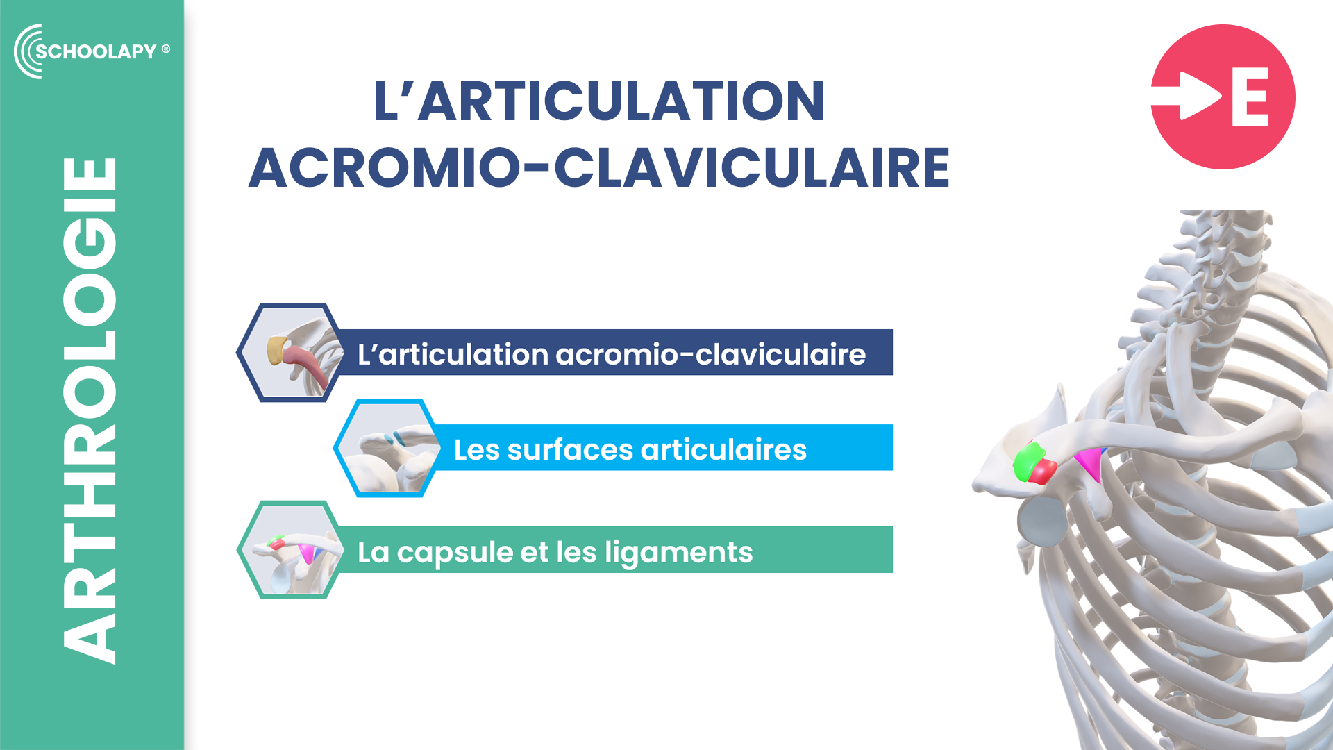 Les Essentiels : Articulation acromio-claviculaire, Surfaces articulaires, Capsule, Ligaments