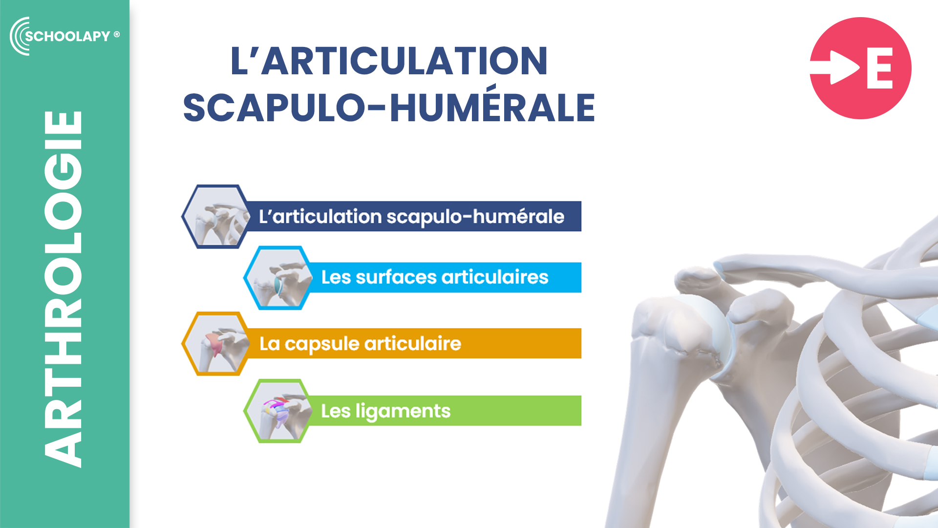 Les Essentiels : L’articulation scapulo-humérale, les surfaces articulaires, la capsule articulaire, les ligaments