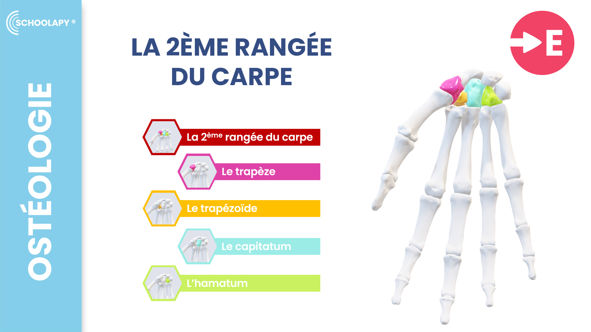 Les Essentiels : La 1ère rangée du carpe, le scaphoïde, le lunatum, le triquetrum, le pisiforme