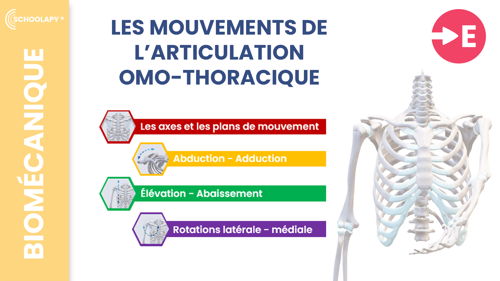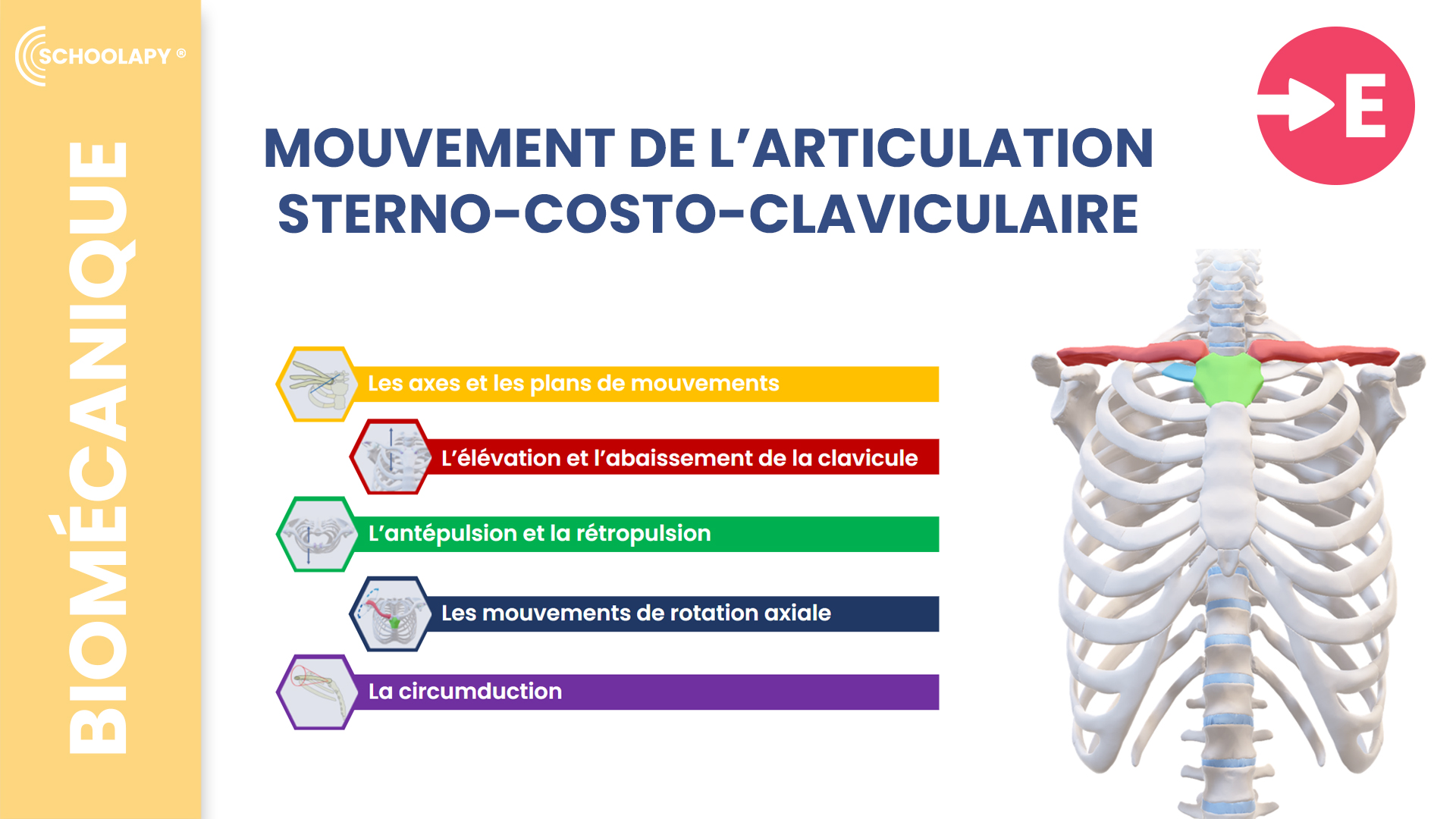 Les Essentiels : Axes et plans de mouvements, Élévation et abaissement de la clavicule, Antépulsion et rétropulsion, Rotation axiale, Circumduction